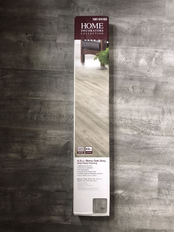 Stony Oak Grey Vinyl Plank Flooring. The plank features a wood‐like finish with beautiful textures and details to add rich style to interior living areas. Give your home a better look and feel by using this home decorators collection stony oak grey luxury vinyl plank.